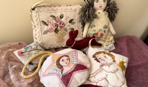 Hand Embrodered “Raffaels Angels” – Big Wooden Jewelery Box with a Mirror